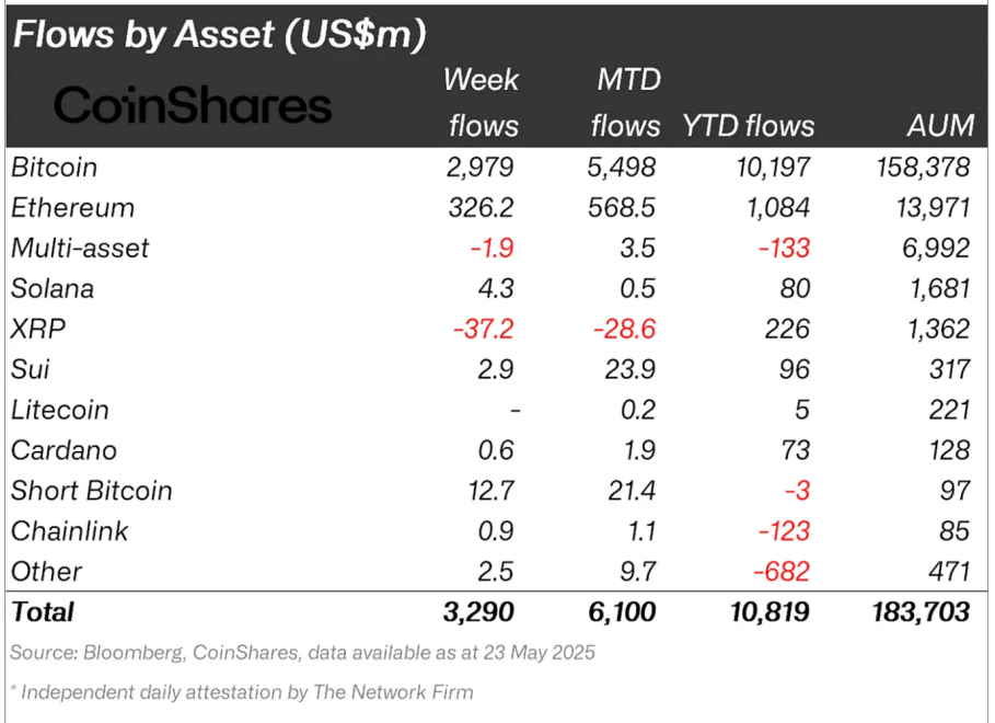— CoinShares (@CoinSharesCo) May 26, 2025