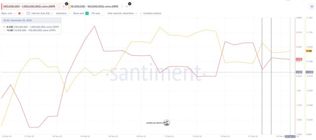 According to the expert, the renewed buying pressure is triggered by large investors holding between 100 million XRP and 1 billion XRP. After days of significant adoption from the group, the total number of coins held by them grew from 8.11 billion to 8.23 billion XRP, valued at approximately $150 million.